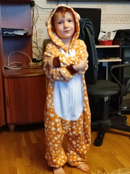 Took with a cool coupon, so went out for 450 rubles. I was afraid they would not send with such a discount, but no! It came quickly, took in five, the suit took on a child 104 cm, just with a margin, not butt. You can wear a ski suit on top, when you want to paint on the mountain)