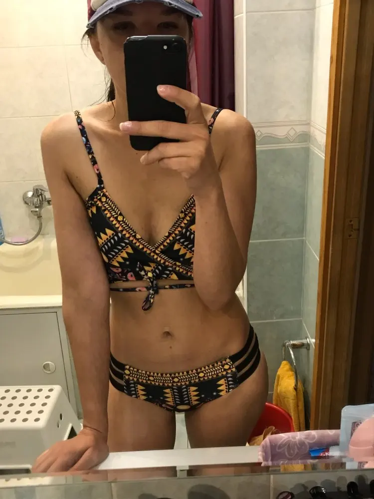 The parcel arrived in 25 days. Relatively fast. Came to a new mail. On my parameters og-92 cm, OB-96 cm size L came up perfectly. The upper part is very unusual fastened, you need to adjust. At cost I went out for 200 UAH. In general, the swimsuit is not bad. I recommend to buy.