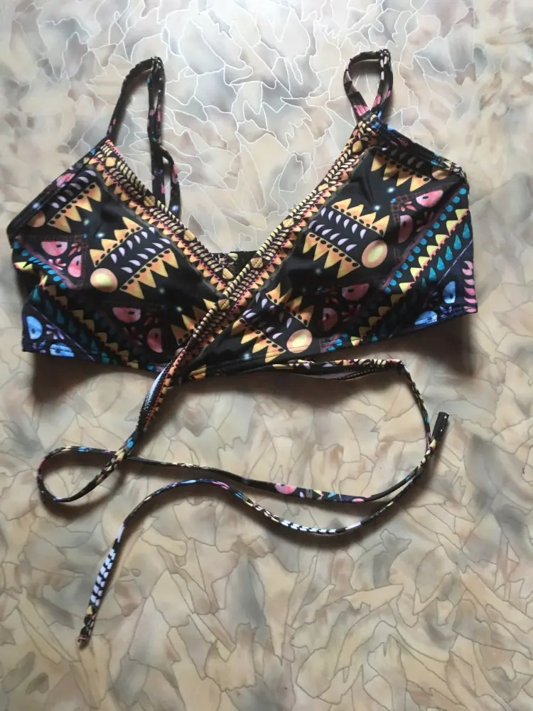 Panties are small in size for about 1 size. The table for L shows 94-102. I have 100. Tugovato. Will have to lengthen the inserts-rubber bands on the side. Model top autumn liked, transformer. Suitable for several sizes, probably, the straps can be made criss-cross, foam inserts take out-add, tie a little different. Sewn well. Material, pattern, color match