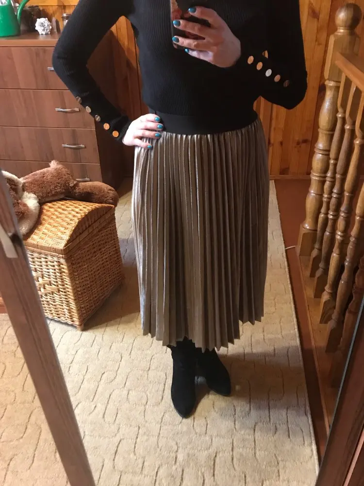 The skirt looks very cool, I imagined it. From below is not stitched, but it’s better-it looks easier. The color is very pleasant, the length is perfect. Ordered 11.11, received 16.12 (Kiev). Highly recommend