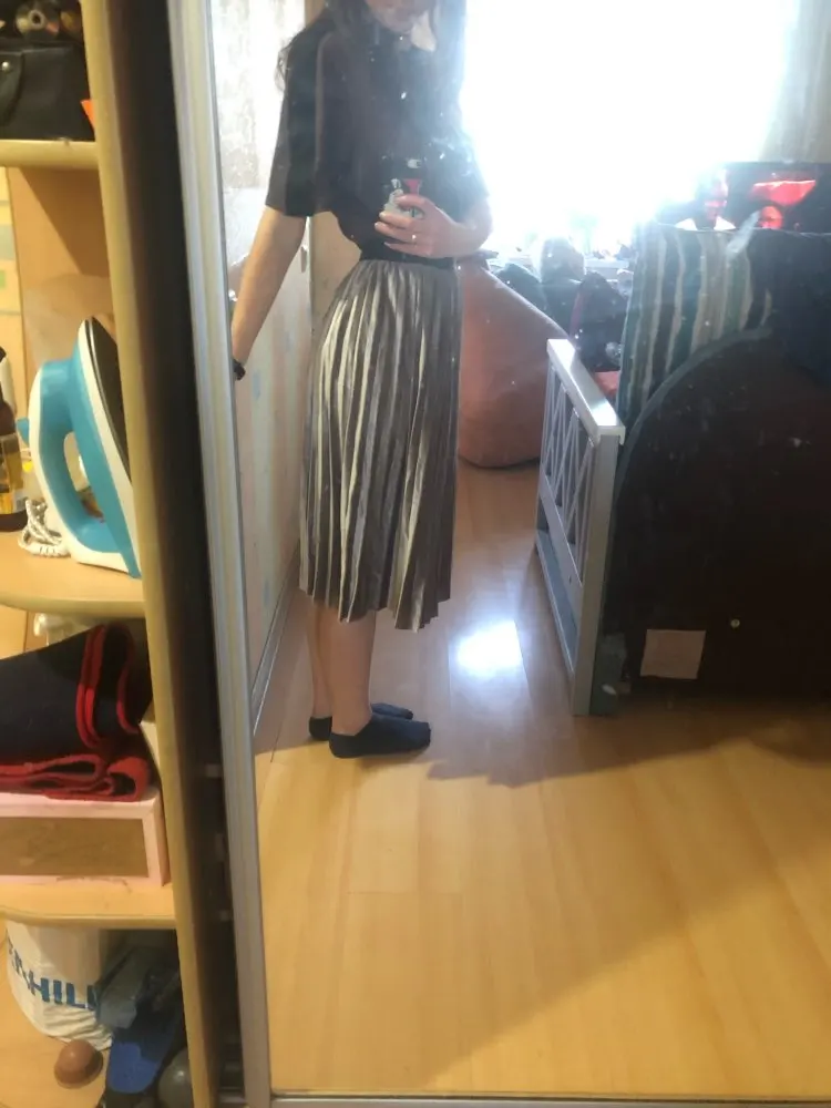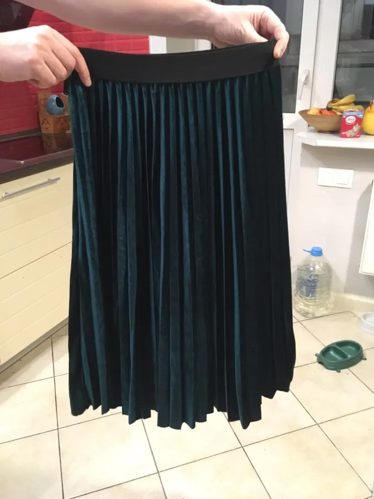 Lovely skirt! At the waist 73 cm and hips 98-sat freely. Fabric-under ‘velour’, light, not transparent, you will need antistatic. In general, very not even a bad skirt. I recommend to buy!