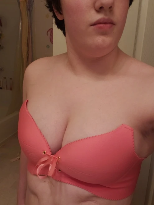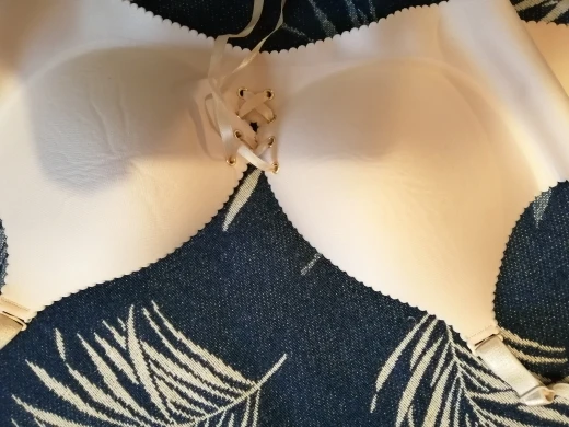 very soft fabric, the pushup was lovely once tied up. I am a C36 for reference. I tried it on without straps to see if it would fall down, after a few good high jumps it started to slip down a bit and my breast tissue started to make the band and cup crease. I ordered an 85 C cup which is a 38 and the band fit like a 36 band would, nice and snug but not tight. I wish there was instructions that teaches you how to lace it up properly but using shoe lace tutorials would work. 10/10 would buy again. I ordered the colours Khaki and Watermelon the lighting in my bathroom was more yellow toned, the pictures where I’m wearing it show how the color is in white toned lighting.