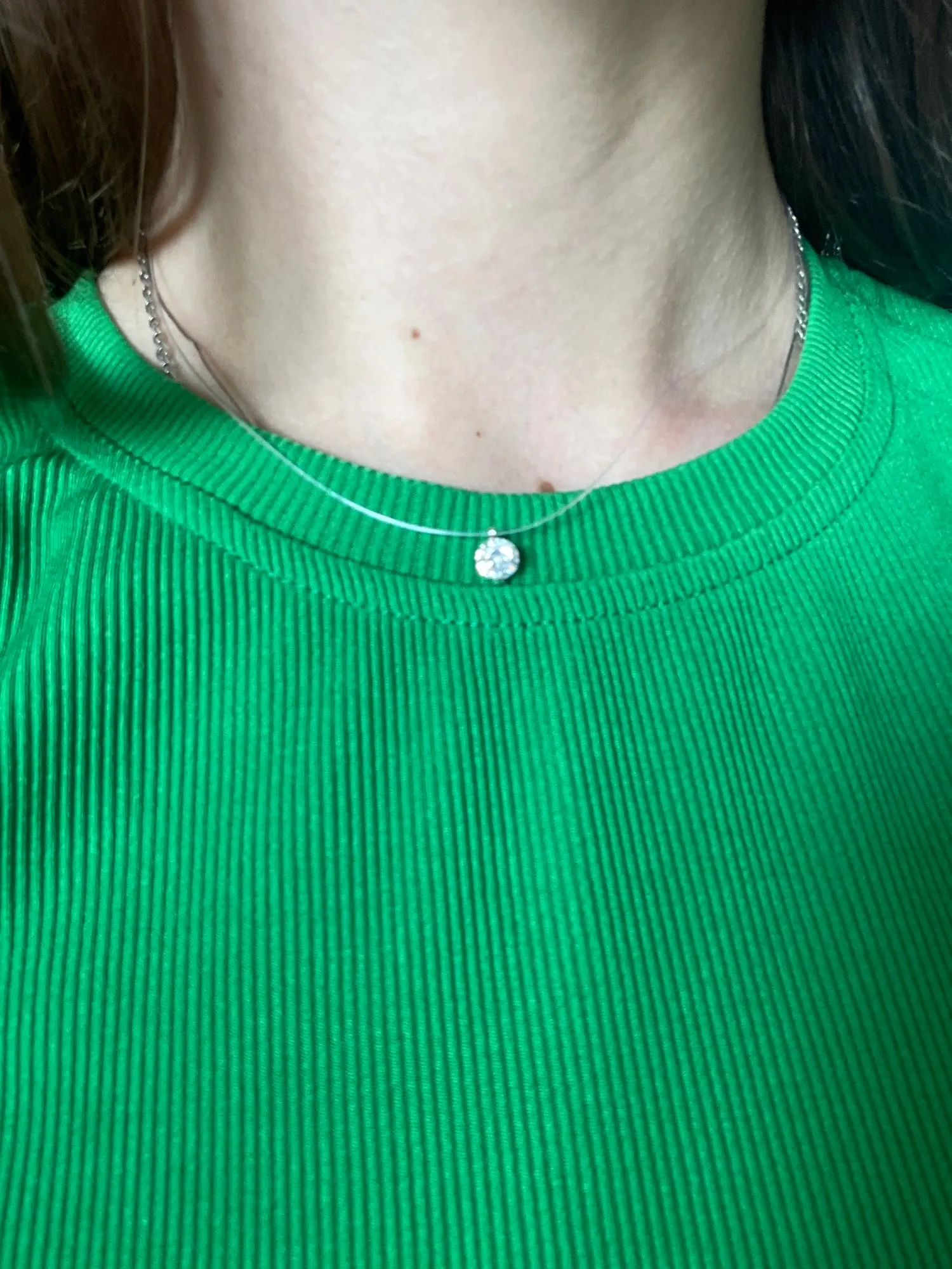 Very nice pendant, the fishing line is almost invisible, the stones are very beautiful shimmering