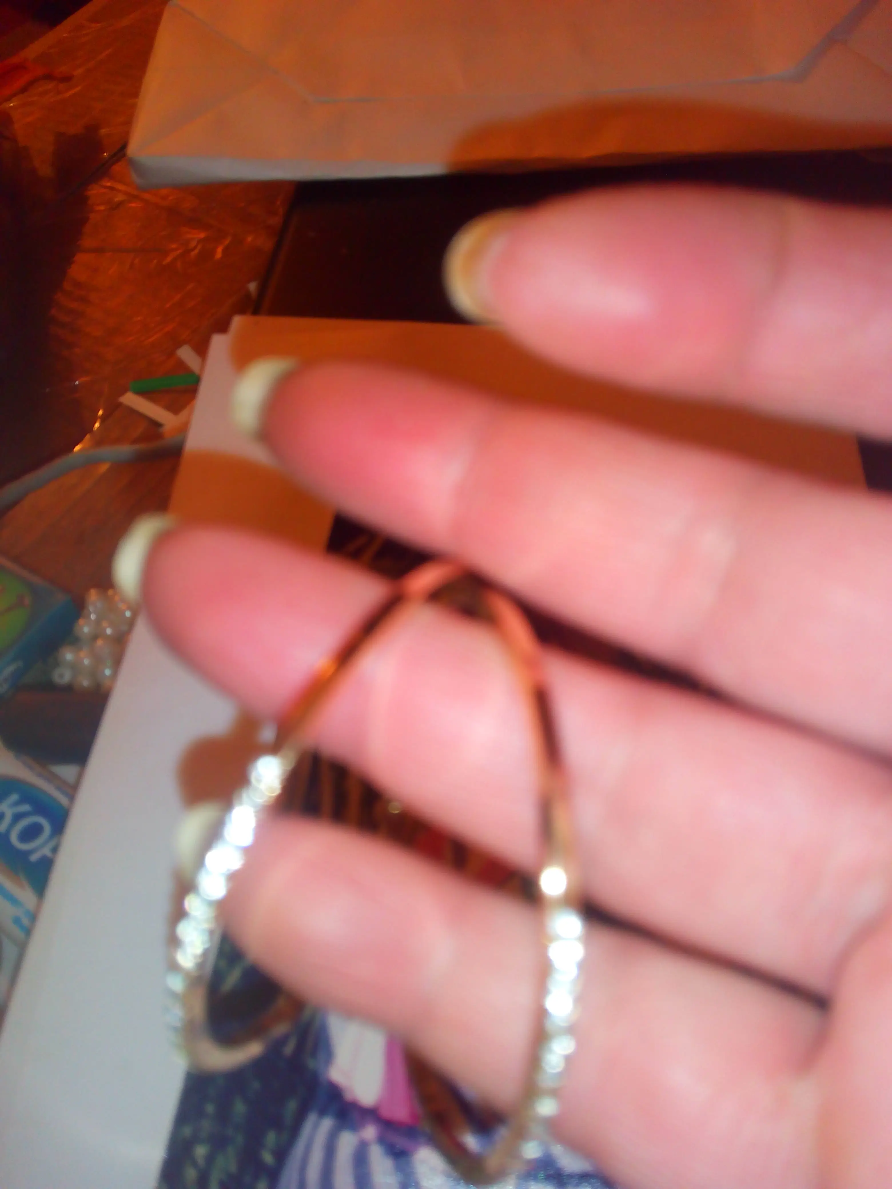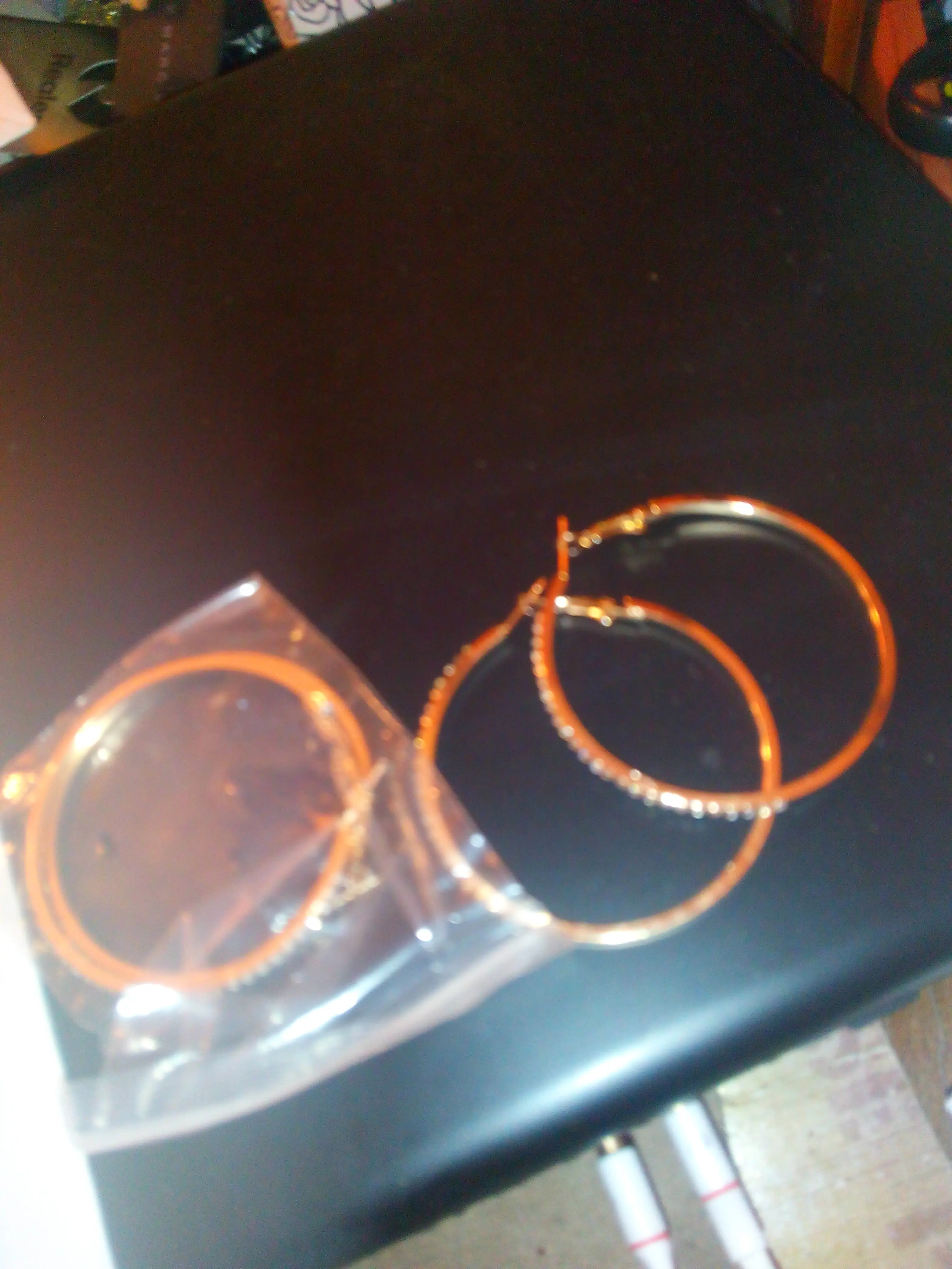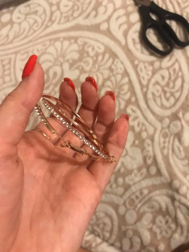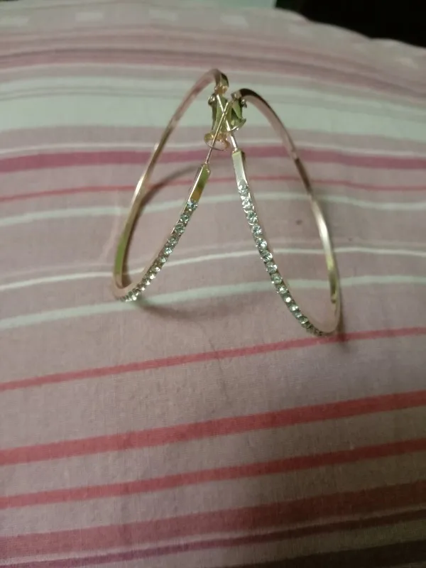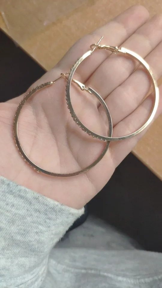 took 2 months to Ireland but arrived in time of protection. lovely hoops. clasp is light so care needed. rhinestones good and bright covering almost half of hoop. hoops are bigger than expected but are nice. I ordered 3 colours of hoops and another 2 styles and seller gifted a 6th pair if earrings. thank you.