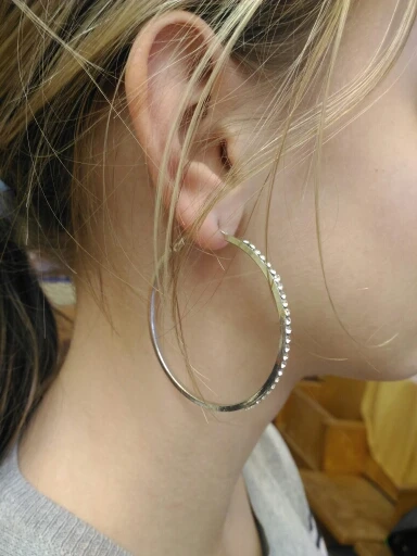 The Stones have a beautiful shine, the camera does not transmit. Only on the blurred photo you can see different irises of light from stones. Not very good clasp, additionally put on silicone plugs behind for reliability. By weight normal, wear can