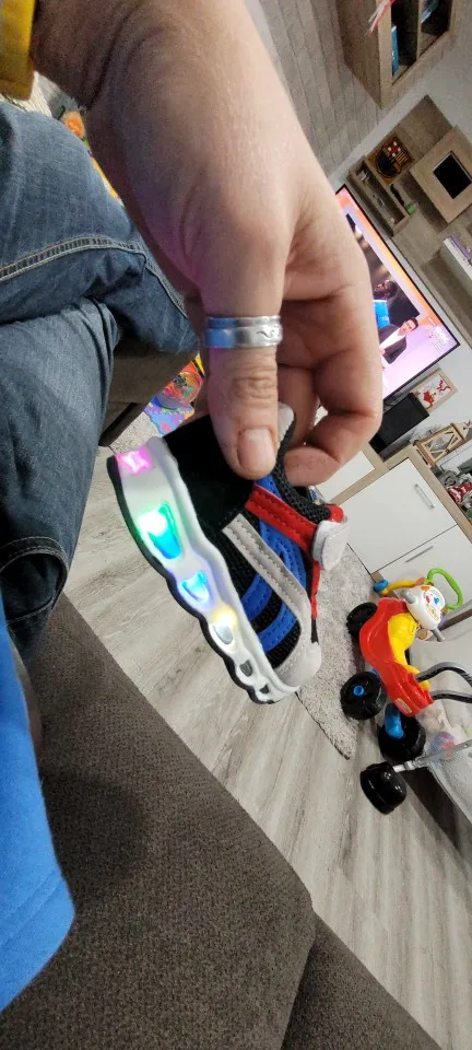 All right, sneakers flashing and shining. Gift for grandson at Christmas.