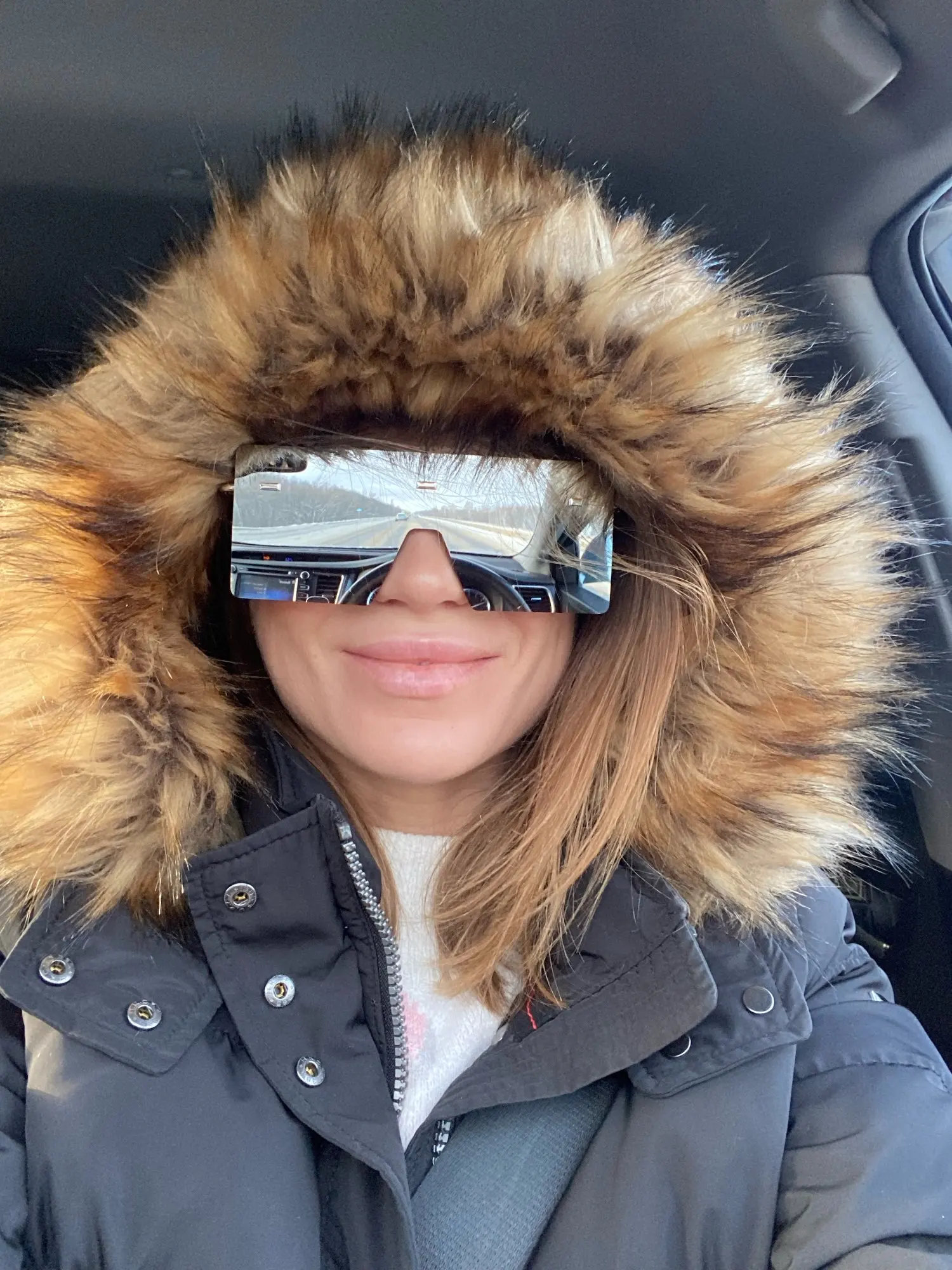 Glasses are big, very nice. They arrived in 2 weeks at Chilen. I asked for the transparent ones and it blocks the light perfectly, on the other side it reflects very well. Happy with my purchase, I’ll think about doing more. Venia packed in two protective bags.
