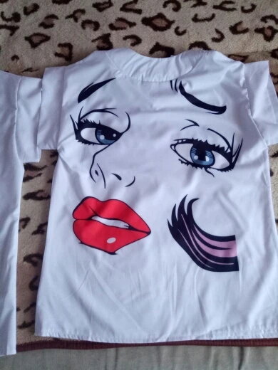 KRAS While the T-shirt, beautiful, bright pattern fabric is slightly thinner than in the photo of the seller, synthetics of course, but it still looks beautiful. I hope in the summer I will not sweat much. Delivery is very fast.