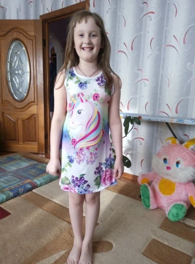 The dress is healthy, thank you! On the growth of 130 came well, but it was possible and a little more authentic by 5 cm. After washing everything is fine, does not paint