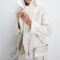 I ordered two jackets. Beige XL at 50 size approached me, even with a sweater, because of the fact that it is thinner. At a black thicker fur and therefore the sleeves inside are narrow, with a warm sweater already uncomfortable, I will wear with a thin blouse or T-shirt. On the height of 168 cm sleeves of normal length, turn away is not necessary.