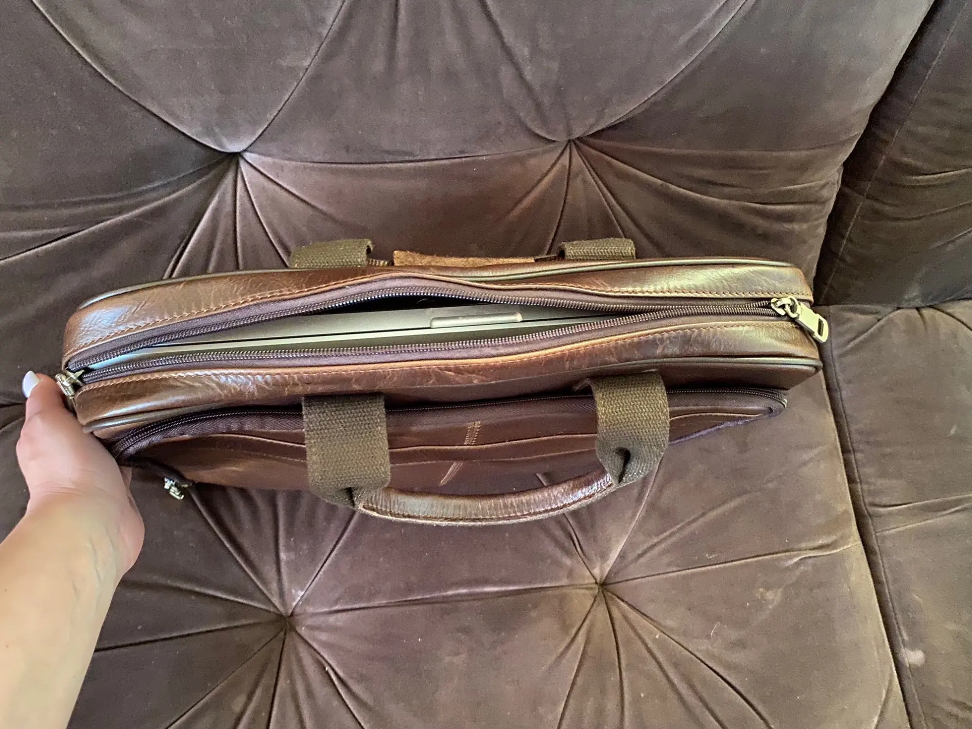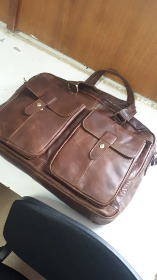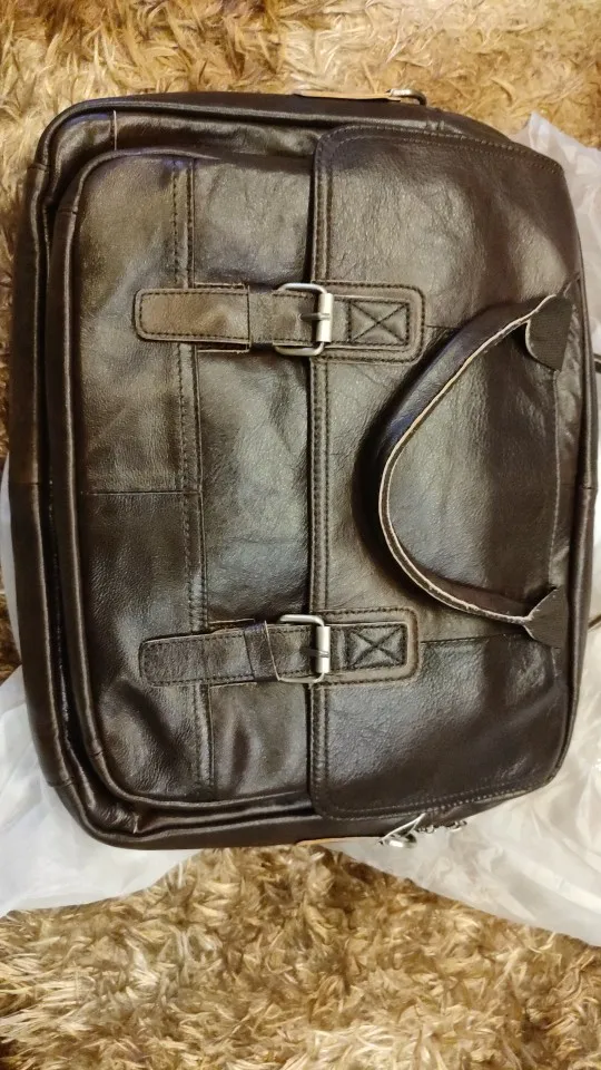 Bag fire!!! Quality of performance, color, accessories, firmware, everything is done soundly. The laptop is placed without problems, there are enough places in the bag, the threads do not stick out. It looks like natural leather, there is a little smell, but it will fade out. The bag looks rich! The seller fulfilled all my wishes, packed well and quickly sent. We have a similar bag costs two or three times more expensive. I hope it will last a long time. To the seller Thank you very much!!! Success in business!!!