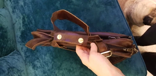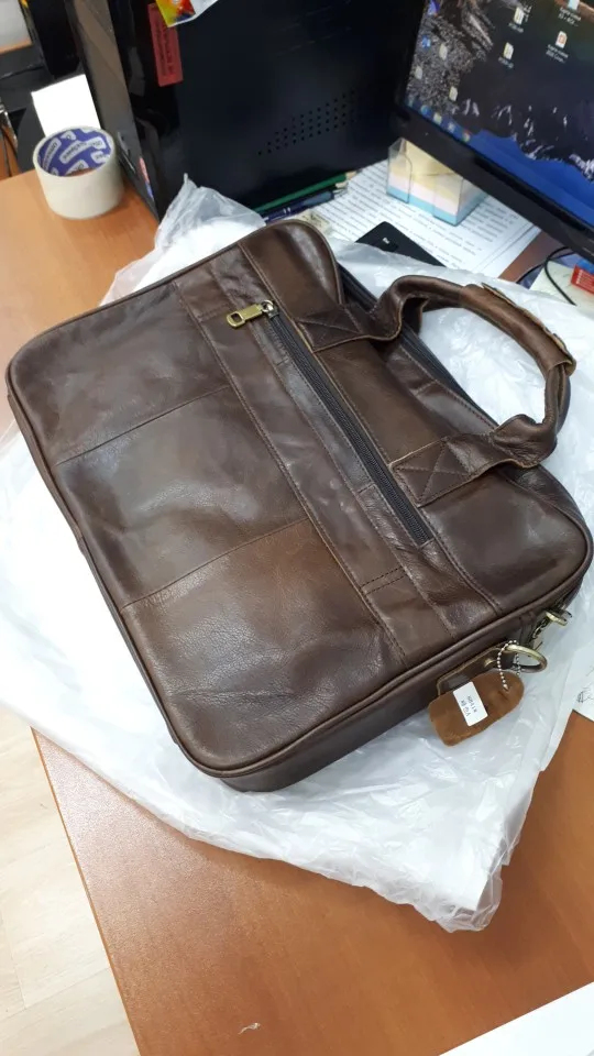 Chic bag for man! The skin is soft, the pockets are enough. Inside there are two divisions and a pocket with a zipper. Delivery for a week by courier home. I’m delighted!