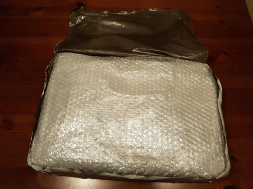 Very well wrapped. He’s arrived in perfect condition, in about 20 days. I smell leather that’s not unpleasant. It looks really good. Very happy with the purchase.